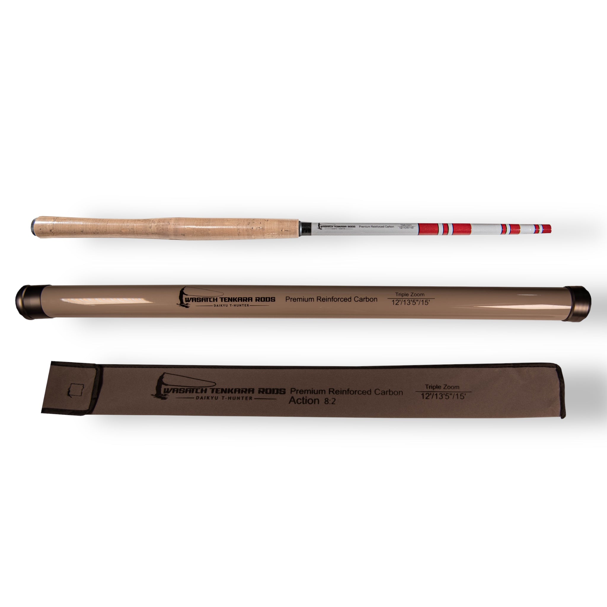 The Daikyu T-Hunter is the largest in our line of triple zoom rods; it can be fished at sizes ranging from 12-15 feet! Since this is the only 12-15 foot premium triple zoom on the market, it is slightly heavier that other rods being sold. However, don't be afraid by the size, this rod is incredibly well balanced and feels nice in the hand. We know that you'll loving using this rod with your son or daughter at the neighborhood pond catching Perch, just as much as when you take it to the Green River and land a 31" Brown.