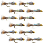 Flashback Gold Ribbed Hare's Ear Trout Fly 1 Dozen Nymph Wet Flies Size 14