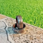Reaffirm your vows with the Infinite Promise Damascus Steel Vow Renewal Ring with Copper Lines and RoseWood Inlay by KBS Knives Store. This elegant ring features the strength and beauty of Damascus steel, crafted from 15n20 and 1095 steel, enhanced with striking copper lines and a rich RoseWood inlay. Each ring is uniquely crafted to symbolize your enduring love. Comes with a beautiful ring box. Available in all sizes.
