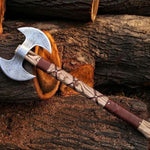 Product Title: "Mastercraft Battle Axe: Custom Handmade Engraved Double Blades with D2 Steel and Ash Wood Handle, Leather Wrap, and Sheath"