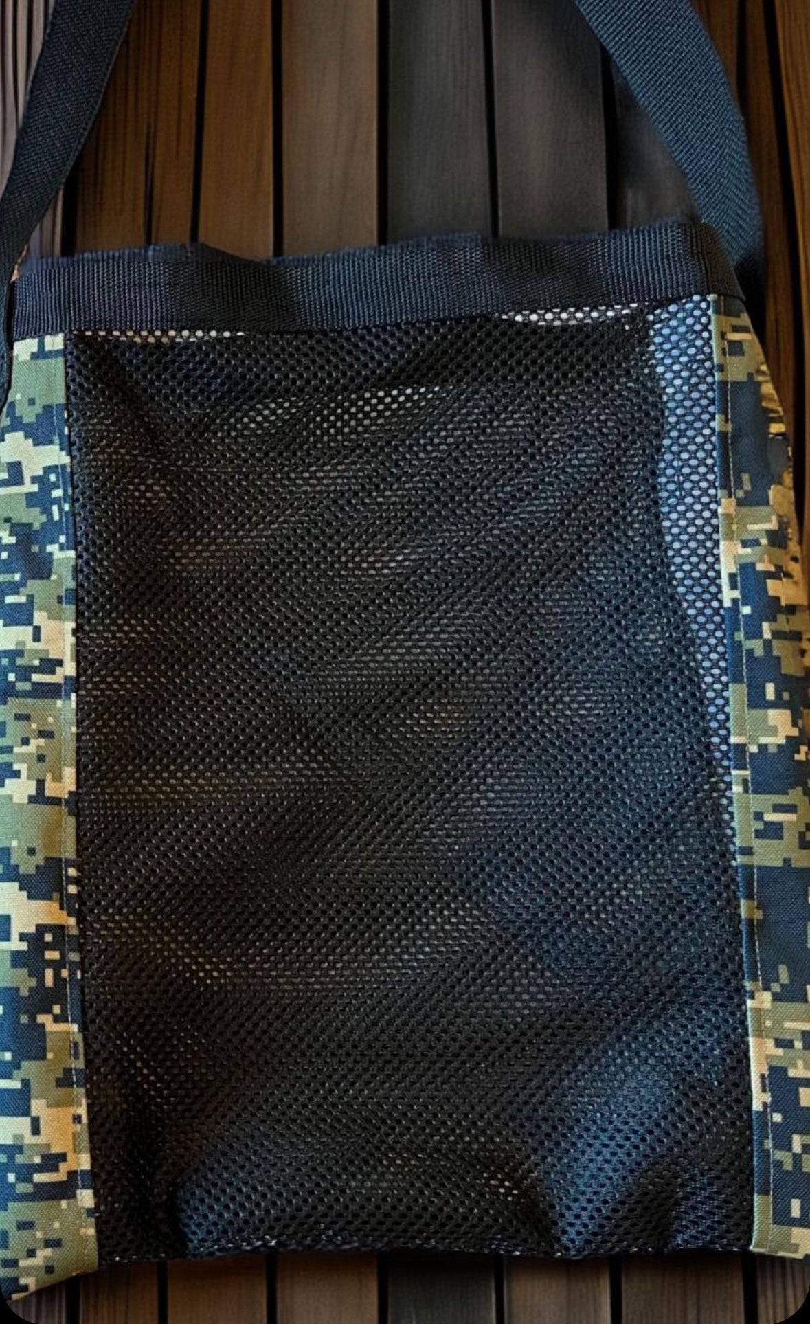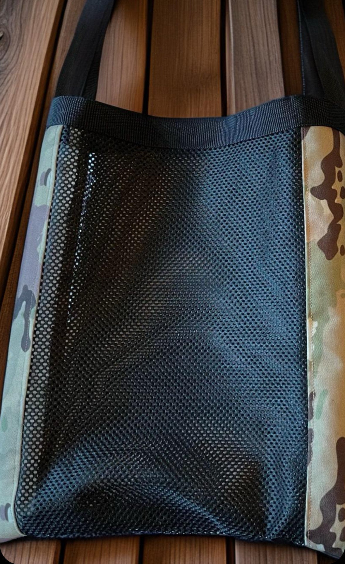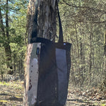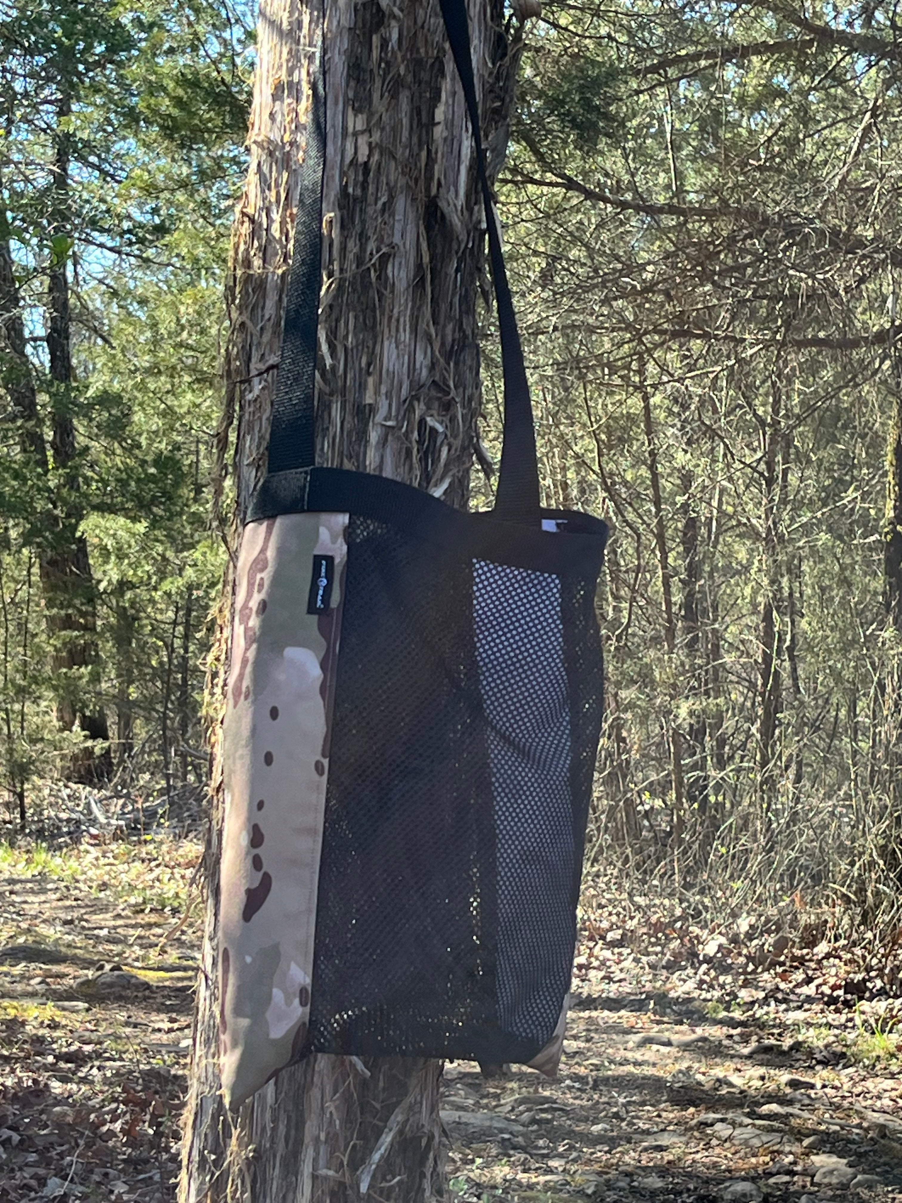 Handcrafted in the USA by our local Pike Trail Seamstress Artisan, Paula. This bag was made in Missouri with repurposed, unused, Pike Trail Gaiters and a mesh liner. In today's world of online sales we often receive returned gear from wrong addresses, order cancelations, etc. and we wanted to give these products a new life instead of tossing them in the dumpster. So we transformed them into the ultimate Foragers Bag!