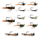 Tactical Czech Nymph Fly Fishing Flies Collection - One Dozen Tungsten Bead Euro Nymphing Fly Assortment - 2 Each of 6 Patterns - Hook Sizes 12, 14 and 16