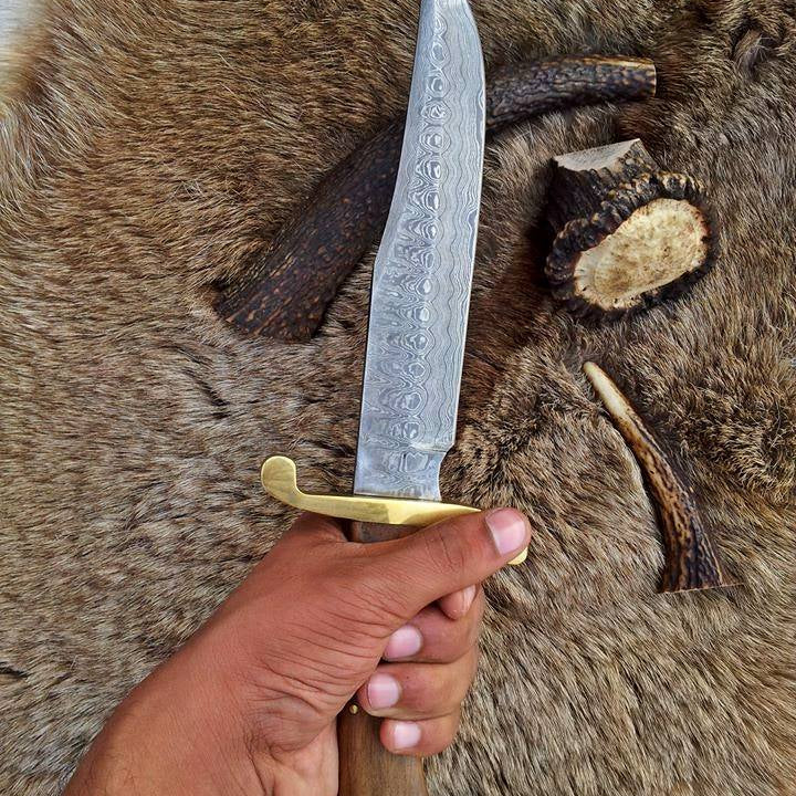 Custom Handmade Original Bowie Knife with Full Tang Damascus Steel Blade and Rosewood Handle - 13 Inches