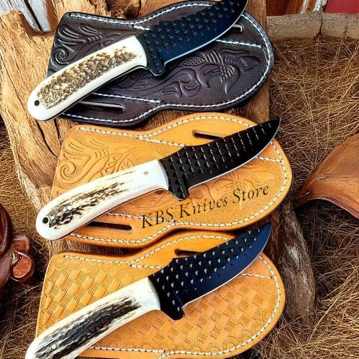 Custom Skinning Hunting Knife | Hand Forged 1095 Steel Blade with Micarta Handle | 7.2 Inches | Leather Sheath | KBS Knives