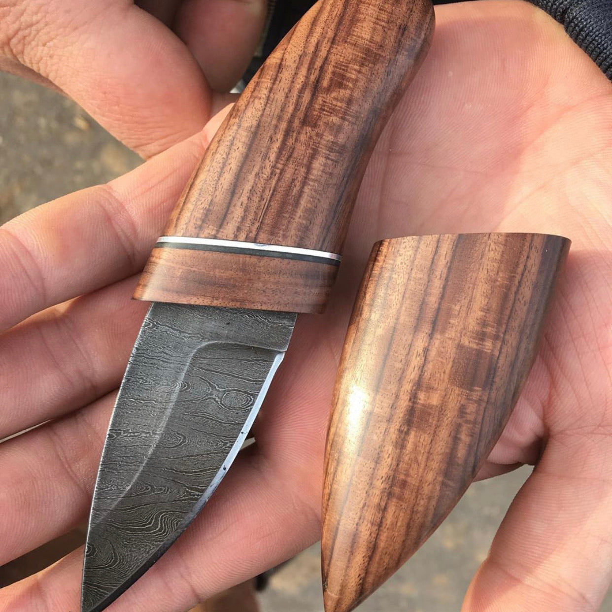 Damascus Bushcraft Camping Knife with Rosewood Handle - 9-Inch Overall Length - Includes Leather Sheath - Available at KBS Knives Store