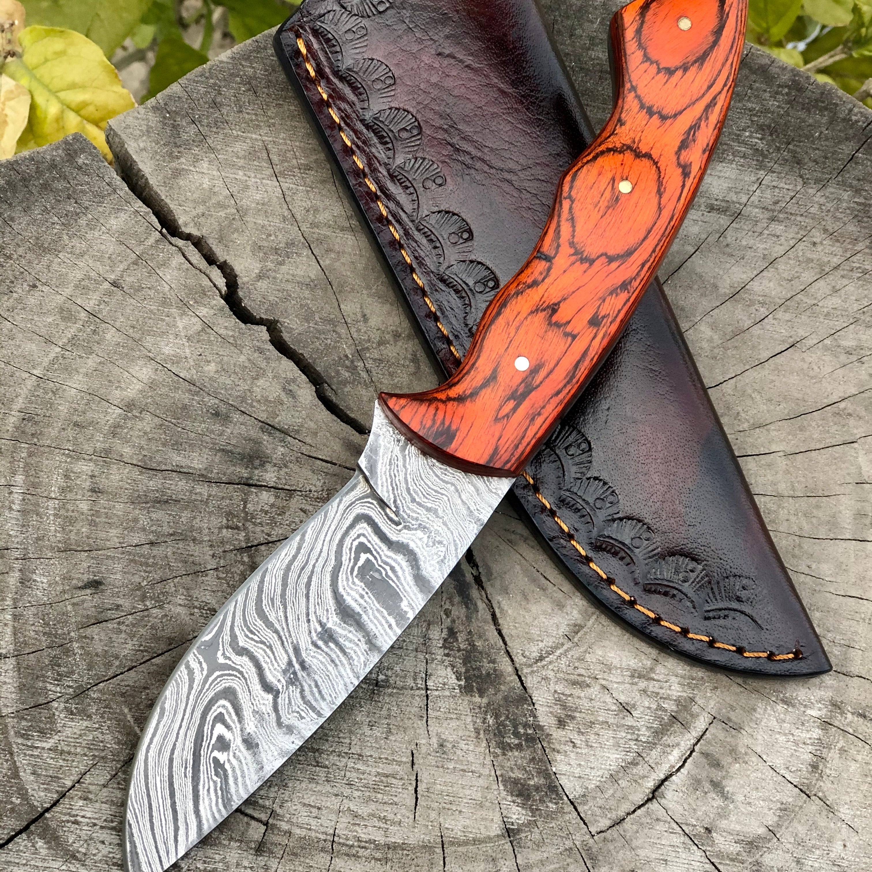 Damascus Steel Hunting Skinning Knife - Rosewood Handle, Full Tang Blade - 8.5 Inches - KBS Knives Store