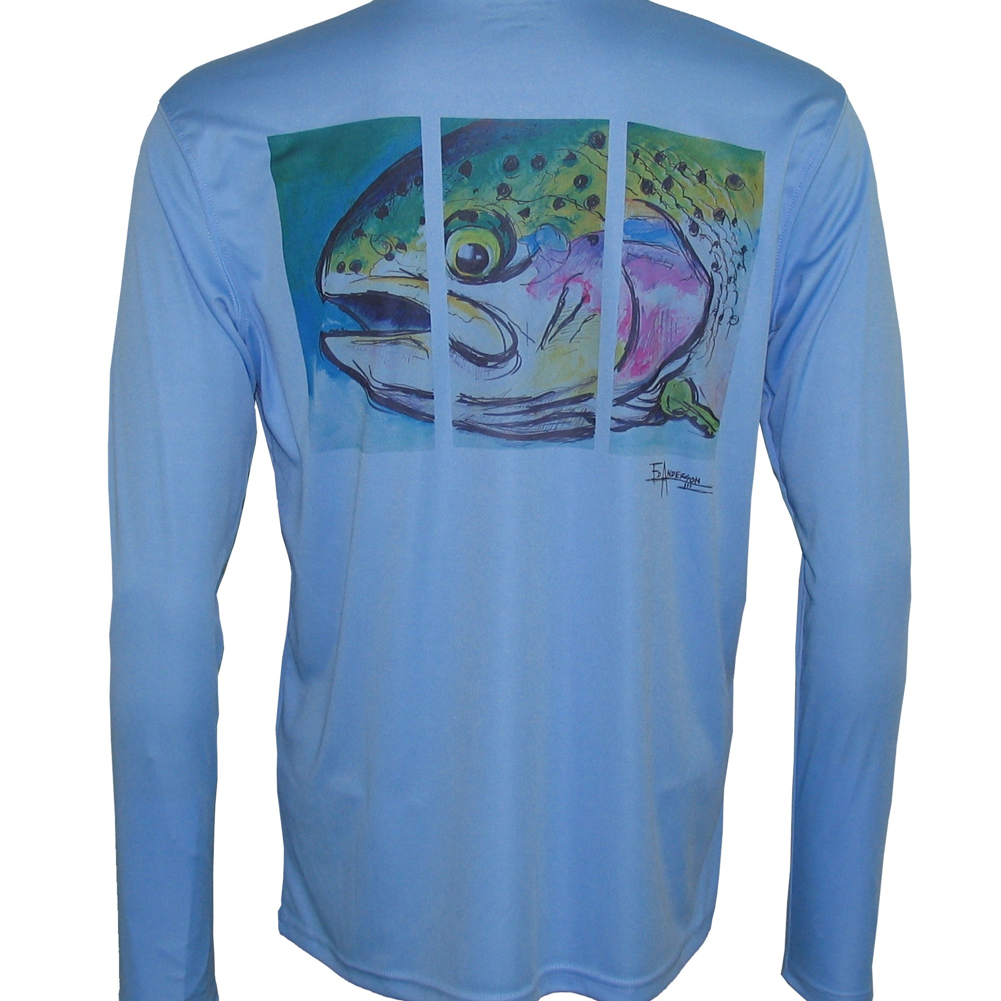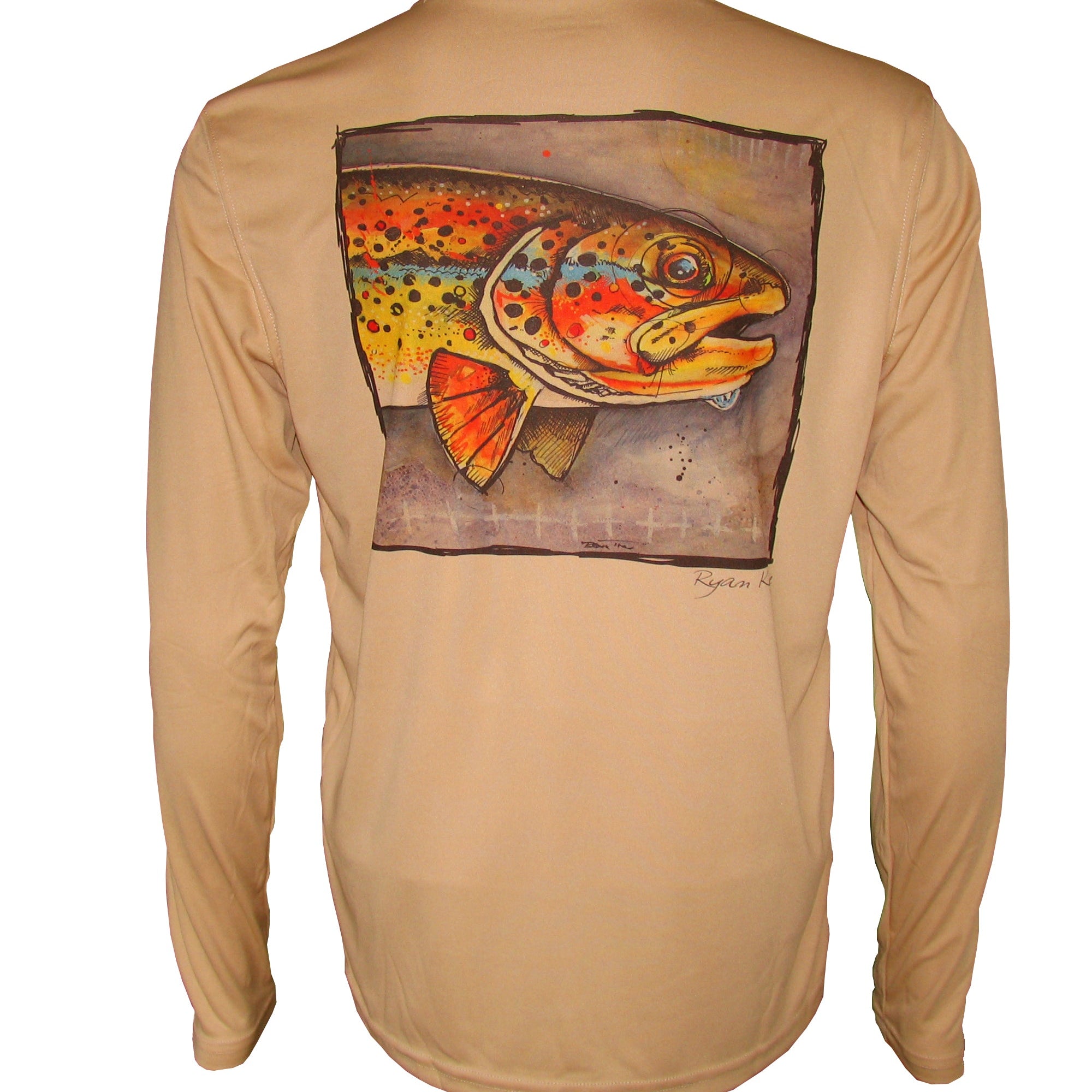 Men's Sun Protective Fishing Shirt Arctic Blue/Freestone Cutthroat Trout