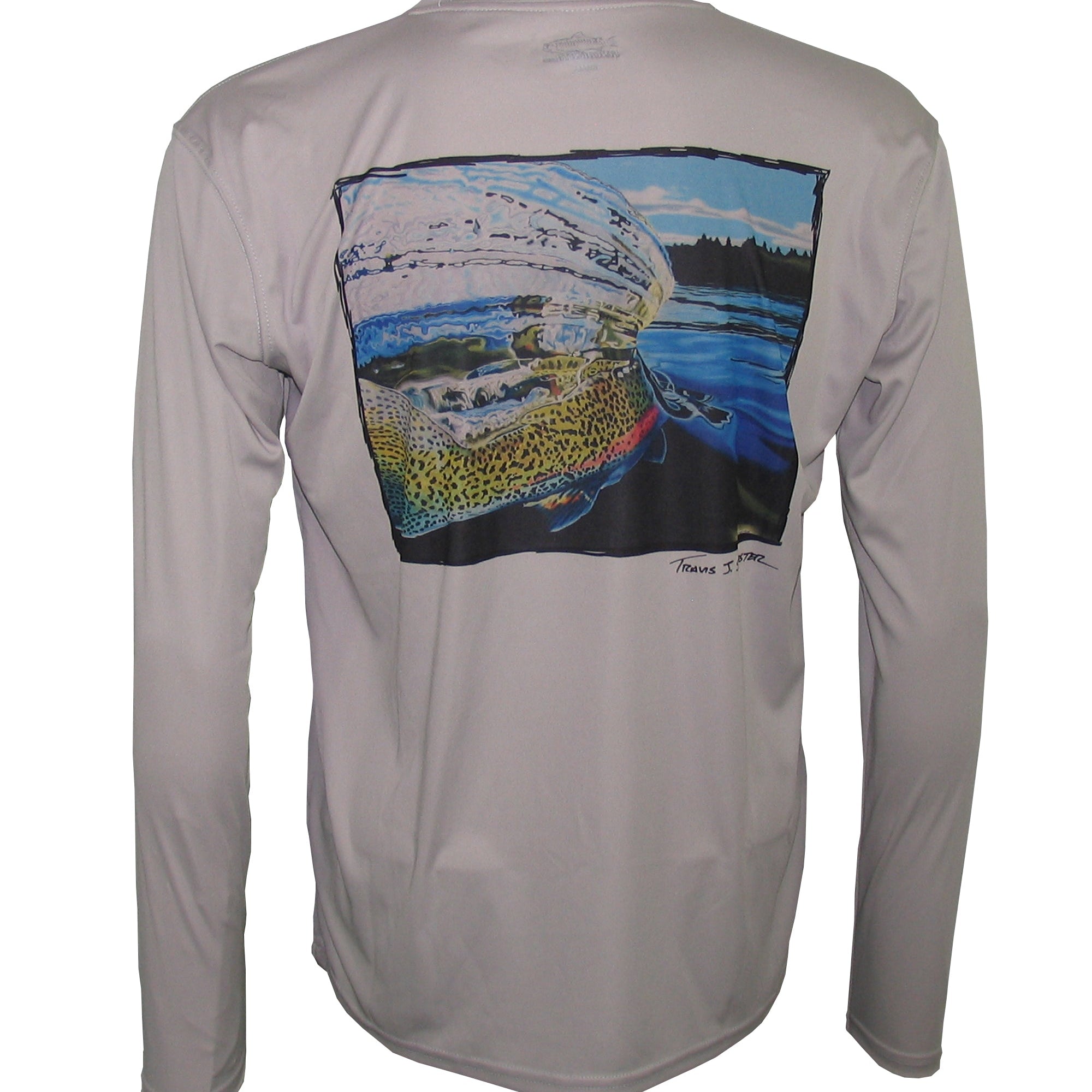 Men's Sun Protective Fishing Shirt Grey/Whiplash Rainbow Trout