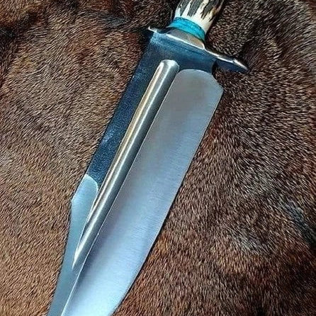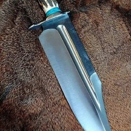 Ultimate Survival Bowie Knife - Handmade, 1095 Forged Steel, 11" Blade, Antler Horn Handle, Exotic Wood, Steel Guard