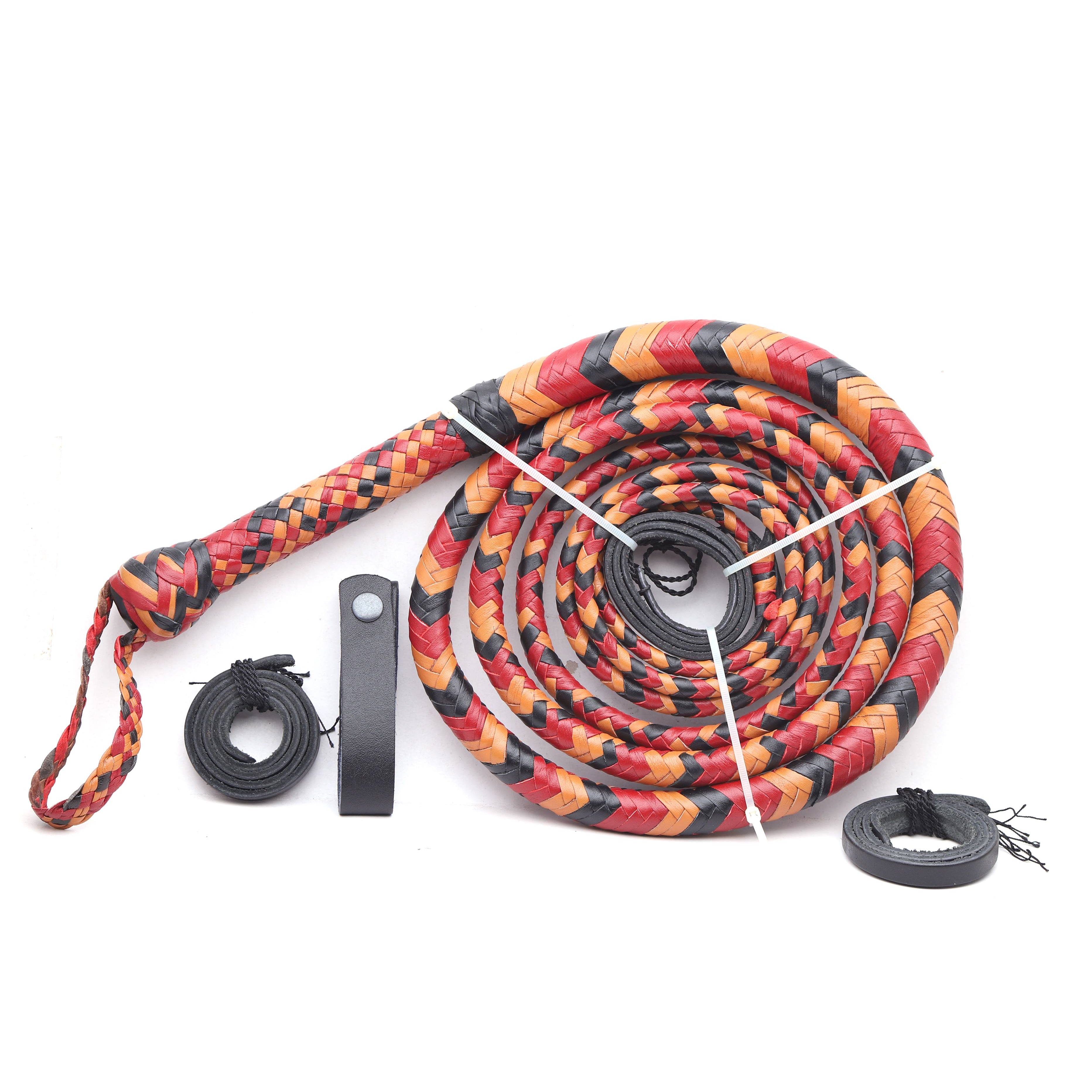 Whipping Leather – Professional Bullwhip by KBS Knives Store (Red, Black & Orange, 4ft–16ft)