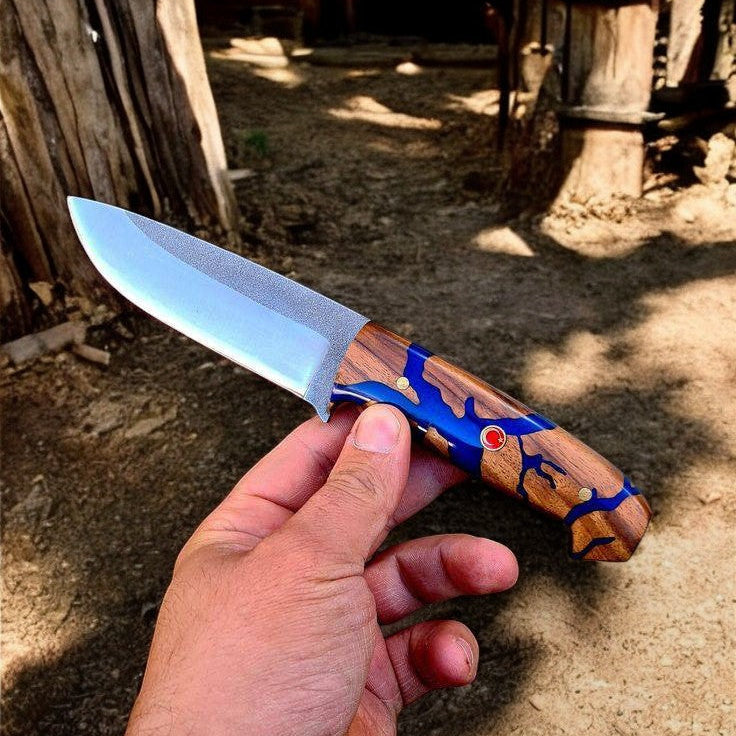 Western Trailblade – Fixed Blade Cowboy Knife with Olive Wood Handle & Horizontal Leather Sheath