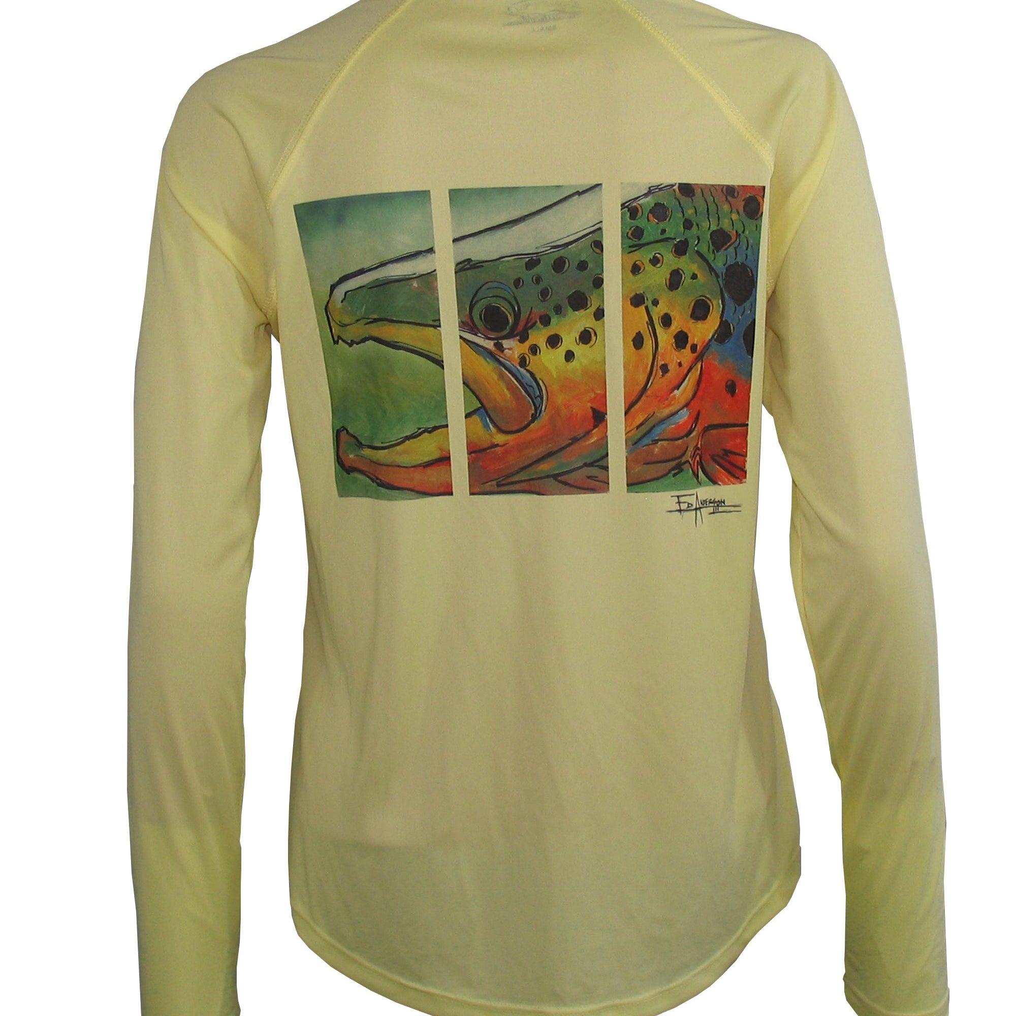 Women's Sun Protective Fishing Shirt Pale Yellow/Colored Brown Trout