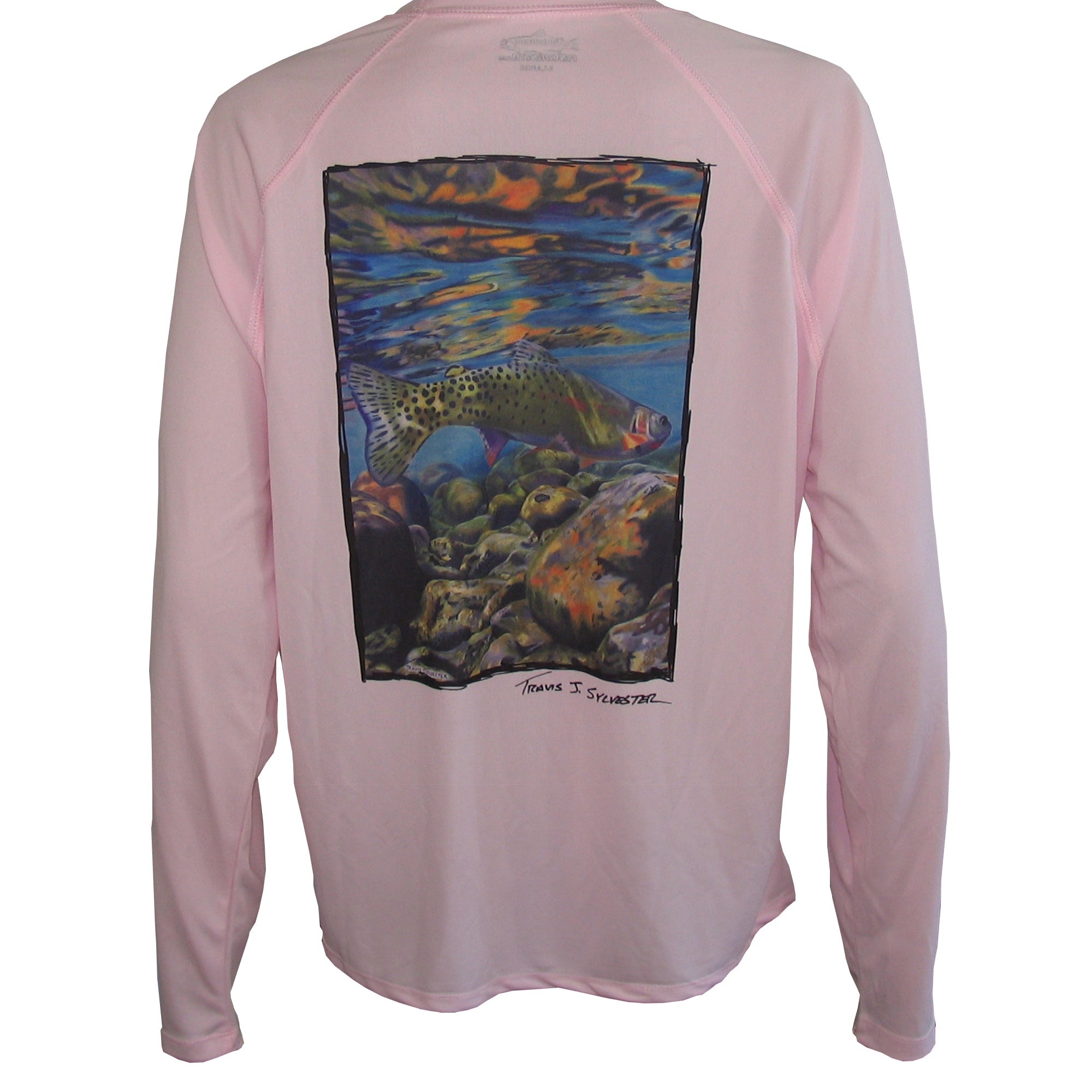 Women's Sun Protective Fishing Shirt Pink Blossom/Freestone Cutthroat Trout