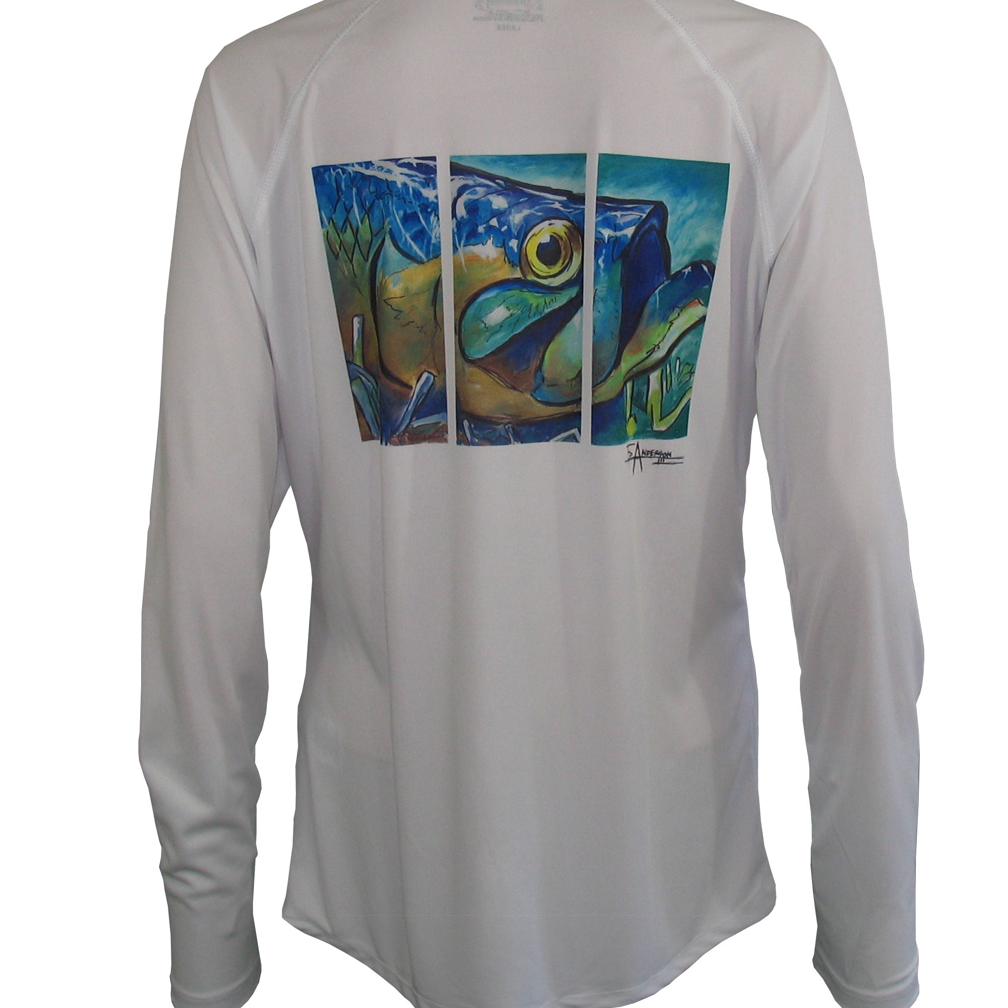 Women's Sun Protective Fishing Shirt White/Tarpon Layup