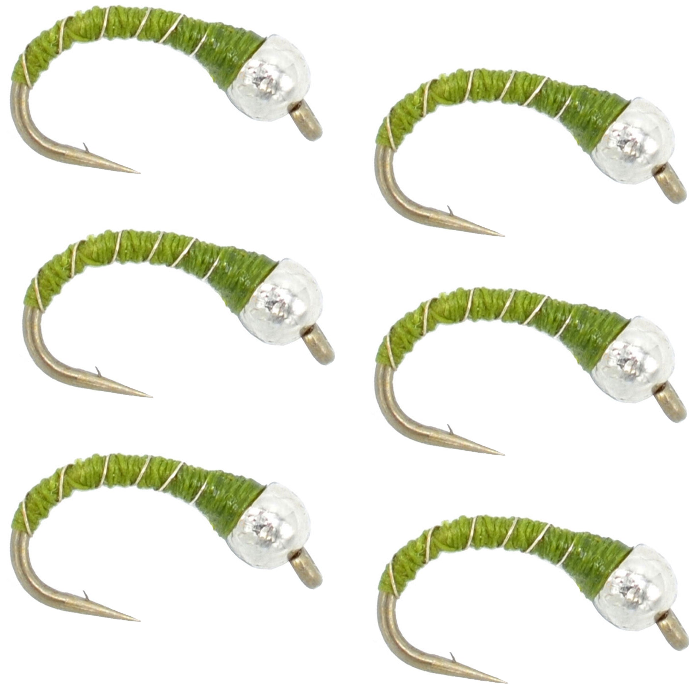 Bead Head Olive Zebra Midge Still Water Nymph Fly - 6 Flies Hook Size 18