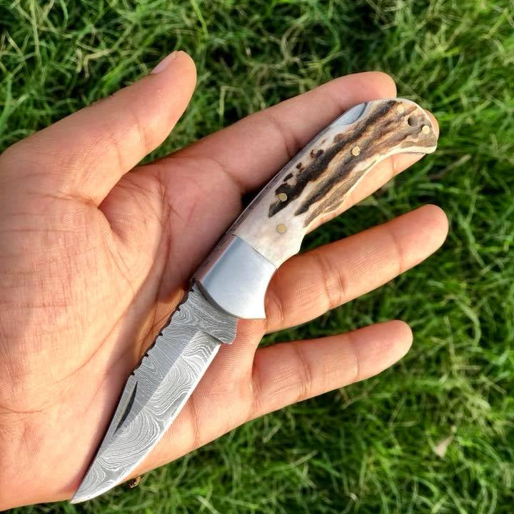 Beautiful Custom Handmade Damascus Steel EDC Tanto Blade Knife