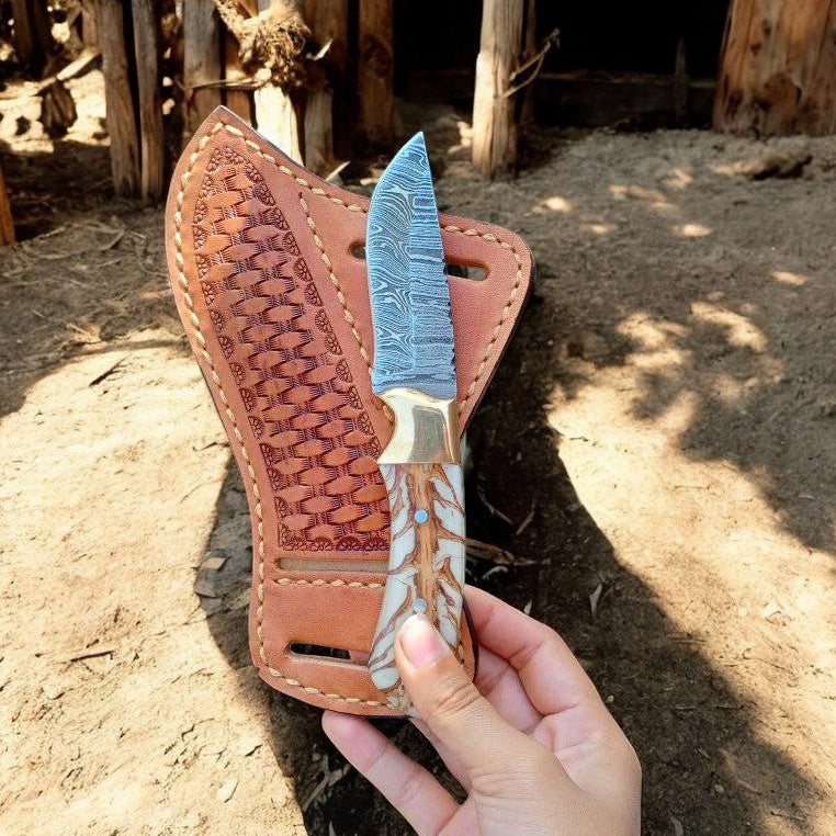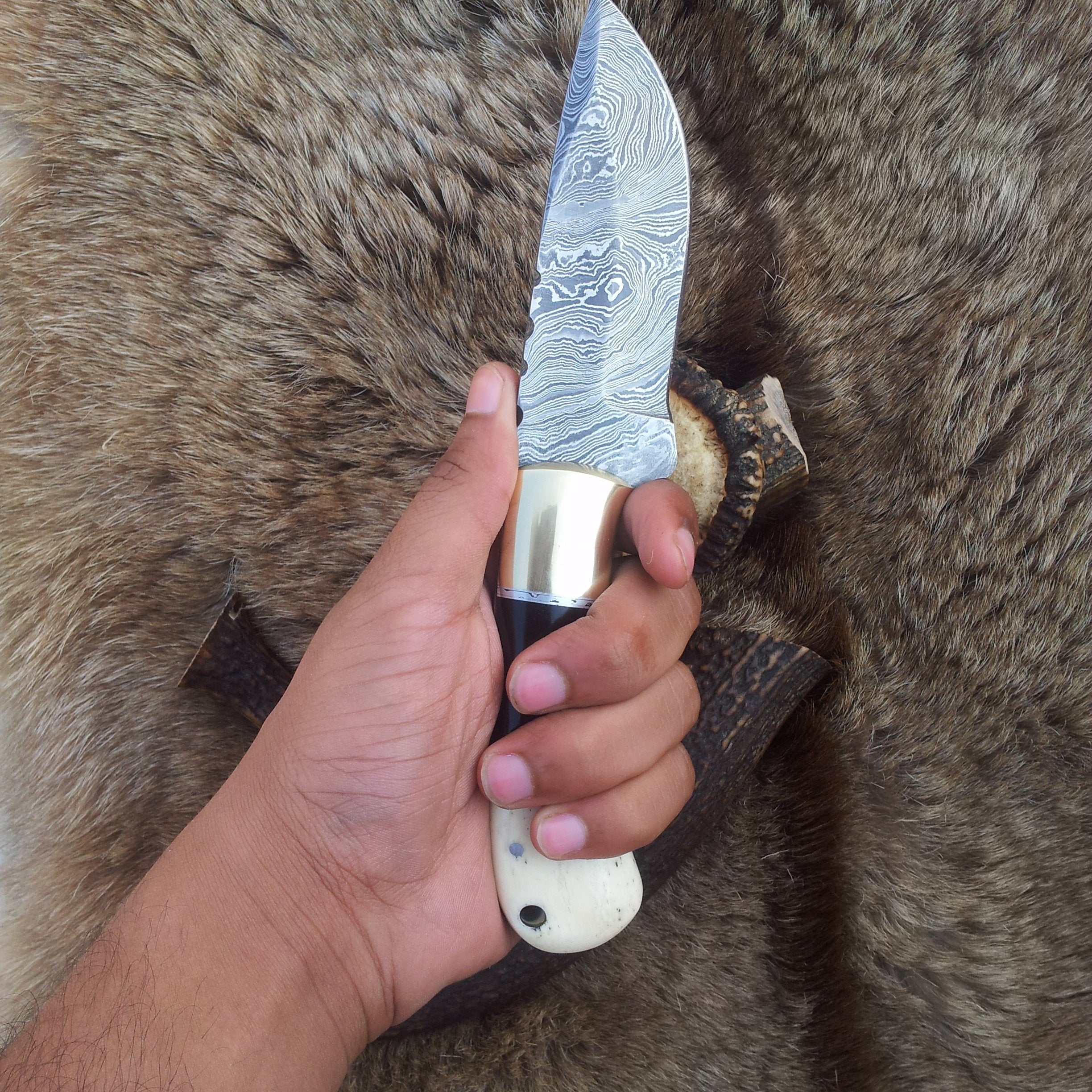 Best Deer Skinning Knife – Handcrafted Damascus Steel with Bone Handle & Leather Sheath