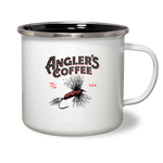 The Angler's Dry Fly Camp Mug is everything a camp mug is supposed to be.  At home in the kitchen or around the camp fire, this traditional-style 16oz stainless steel mug has white baked enamel on the outside, black on the inside, and a polished stainless steel rim for all of your outdoor adventures.