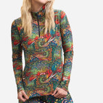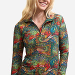 The quarter zip front makes for quick ventilation, while the stand collar and zipper chin guard provide enhanced coverage where it counts. The soft, cool-touch fabric delivers all-day wearability with a punch of personality.