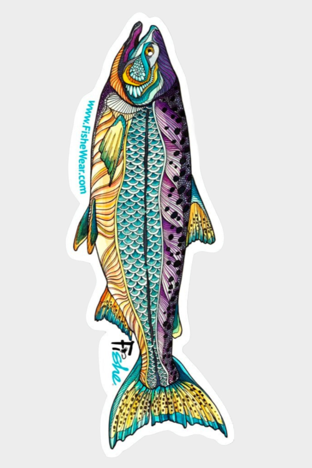 Add that Kaleido King flair wherever you roam. This vibrant fish-shaped decal channels the energy of Alaska’s mighty king salmon—reimagined in a kaleidoscope of bold, colorful pattern. Whether it’s your car, cooler, boat, or water bottle, this sticker brings a fresh hit of Fishe personality to your everyday essentials.