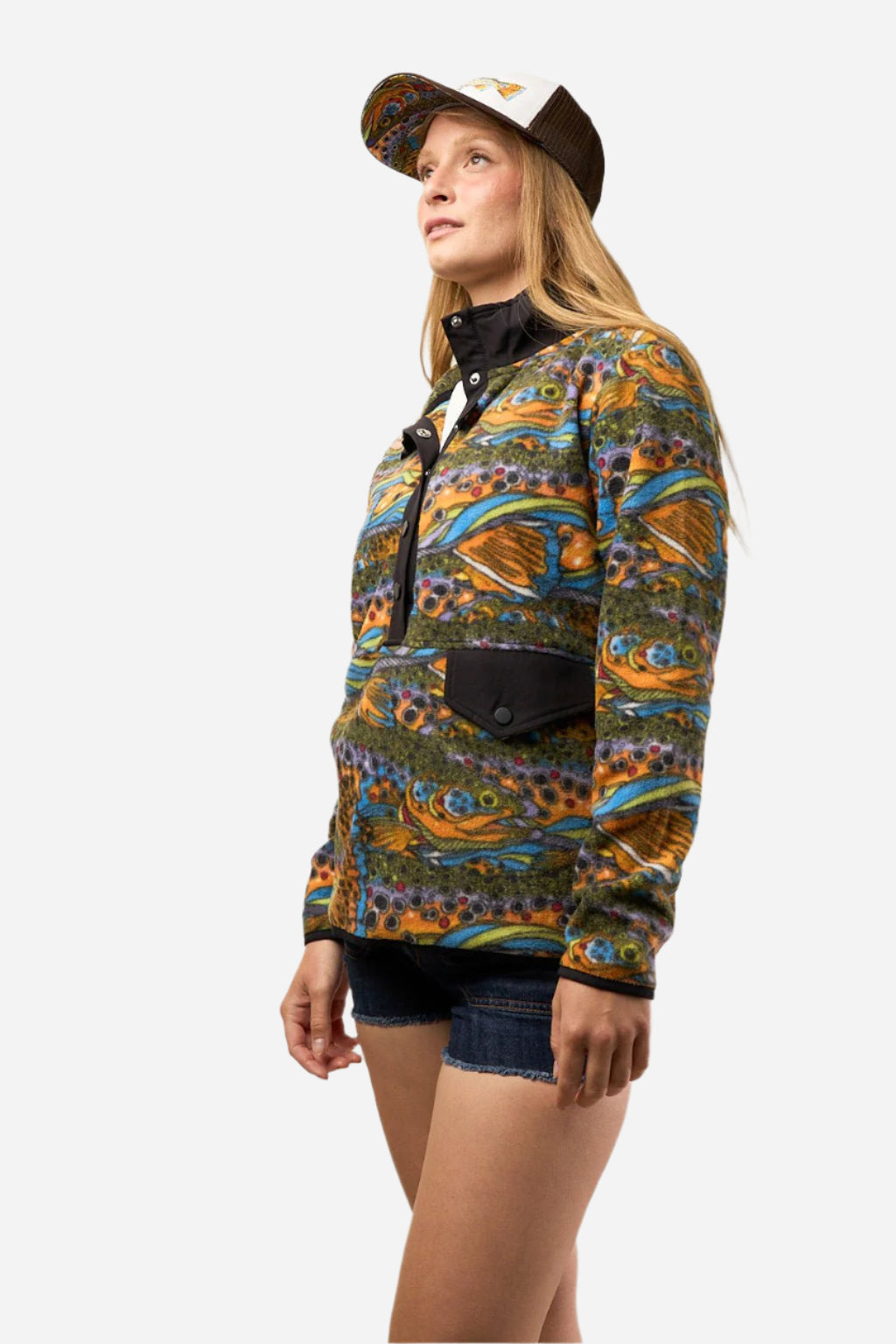 When chilly mornings call and riverside breezes roll in, the Unbound Brown Riffle Snap Fleece Pullover delivers the perfect blend of comfort, function, and fun. Wrapped in Fishe’s beloved Unbound Brown pattern, this fleece is designed to move with you—and turn heads wherever you roam.