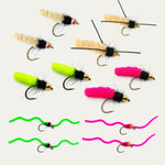 Here's what premium hand tied flies are included. Available as a 12pk and 24pk so that you never run out of a fly that works.