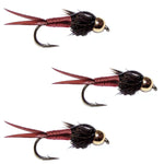 3 Pack Bead Head Red Copper John Nymph Fly Fishing Flies - Hook Size 16