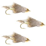 3 Pack Cone Head Muddler Minnow Trout and Bass Streamer Fly - Hook Size 10