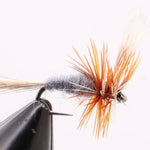 The Adams fly typically features a gray or brown body, grizzly hackle, and wings made from gray or dun-colored feathers. It's a dry fly designed to imitate mayflies and is widely used in fly fishing for trout.