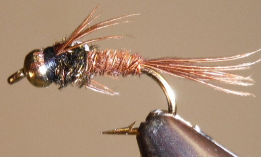 The Flashback version of the BH Pheasant Tail offers another variation of a Caddis or Mayfly nymphs. Sometimes that little extra flash can make all the difference. Fished in moving or still water, this pattern looks like many natural nymphs. The gold bead head makes it even more effective by adding weight and fish-attracting color.
