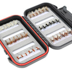 EASY AND CONVENIENT: This fly assortment comes with a fly box so that you can take all your flies with you. The box measures 4" Width X 6"Length X 1.5" Height and holds up to 372 flies.