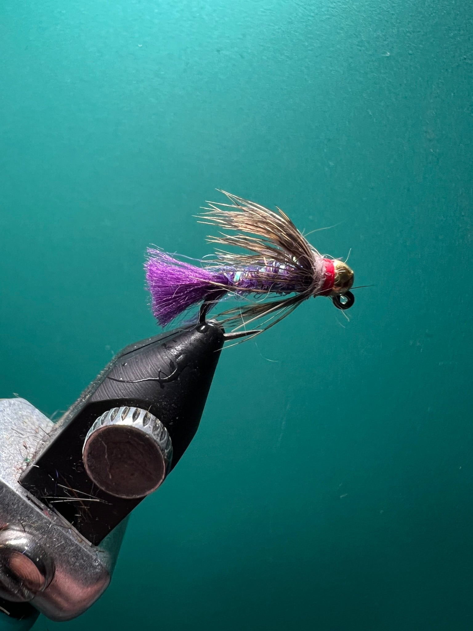Purple Hares Ear tied on jig hooks with Tungsten Beads