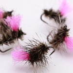 The Hi-Viz Gnat is a fishing fly designed to imitate small gnats or midges. It often features a high-visibility indicator on the body, such as a brightly colored post or wing, making it easier for anglers to track the fly on the water's surface. This visibility helps in detecting subtle strikes when fishing for trout in slow-moving or still waters. The rest of the fly typically mimics the appearance of a gnat, with a slender body and fine wings.
