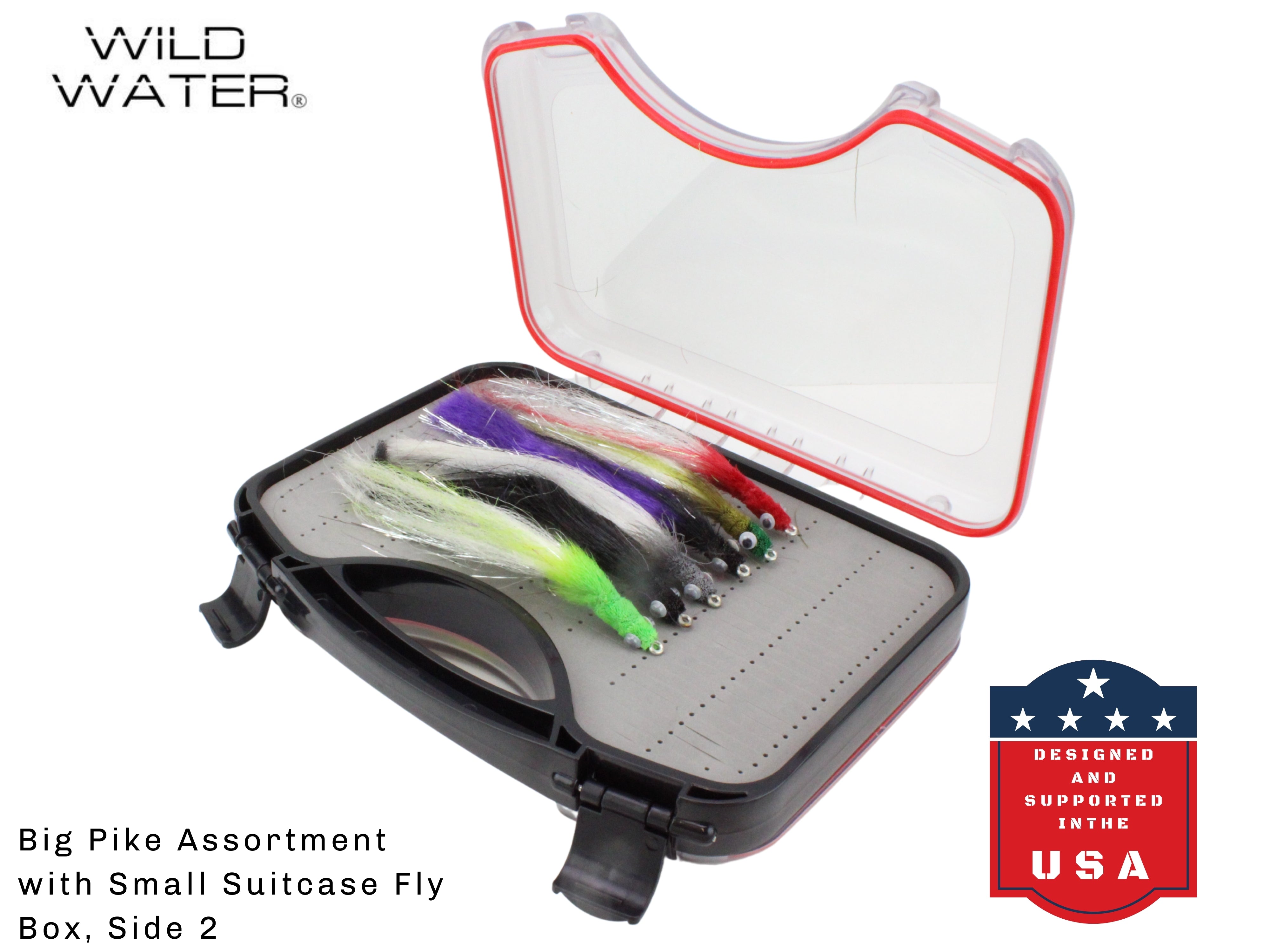 Wild Water Fly Fishing Freshwater/Saltwater Large Fly Assortment is sure to be a favorite of any freshwater or saltwater angler.  Our Small Fly Suitcase will comes with 12 flies in a variety of colors and sizes in two different popular patterns.  Best suited for Pike, Stripers, Red Fish, Tarpon, Bass.