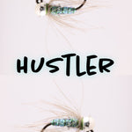 The Hustler Nymph is a fly pattern known for its effectiveness in imitating various aquatic insects, particularly mayfly nymphs. This pattern typically features a slender, segmented body made from materials like dubbing or chenille in earthy tones such as brown or olive. The body may be ribbed with a contrasting material, often wire or tinsel, to add segmentation and durability.
