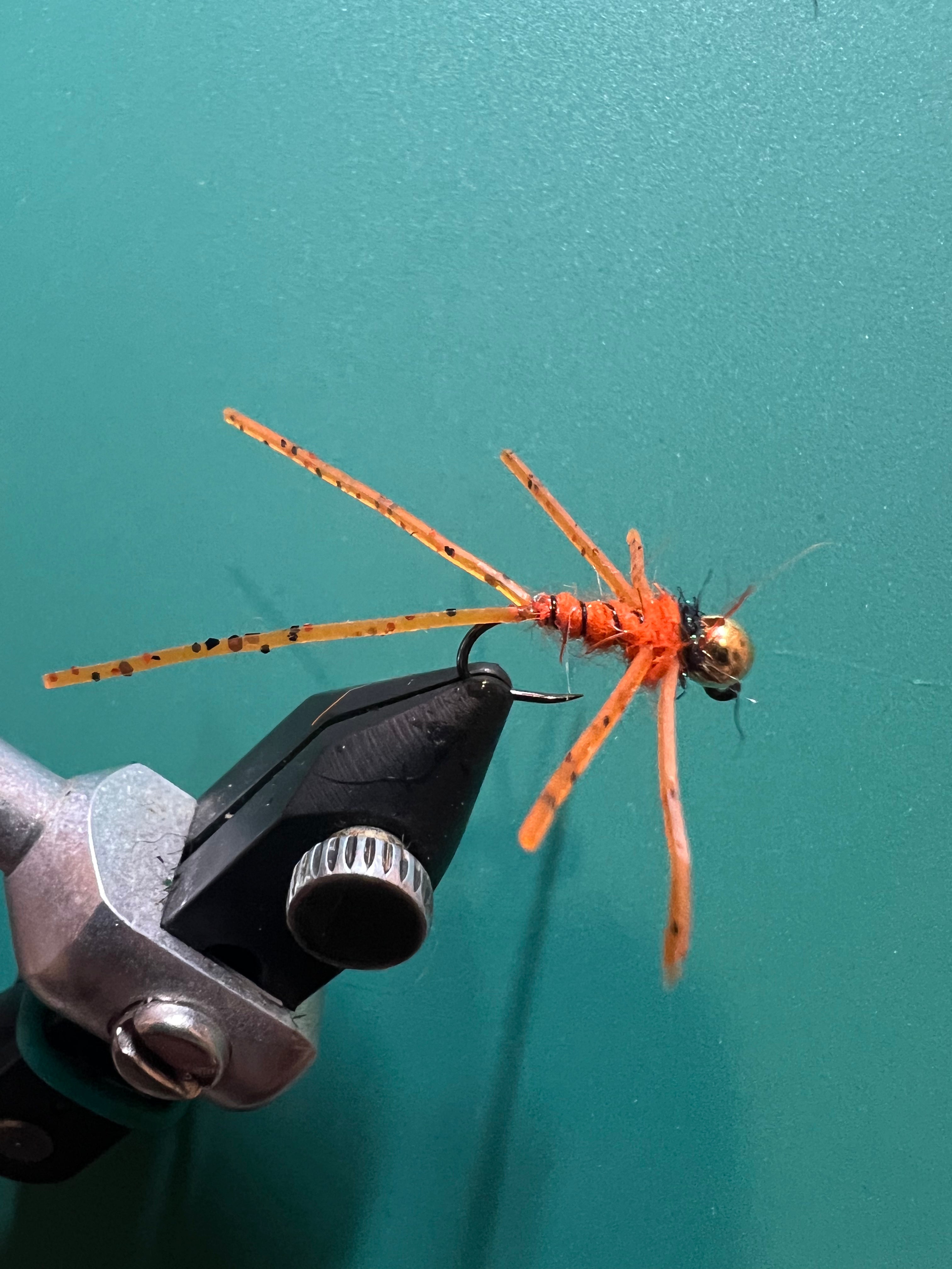 Small rubber legged stonefly tied on a Jig Hook with Tungsten Beads!