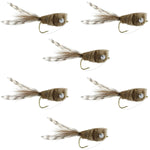 Natural Deer Hair and Grizzly Bass Popper 6 Flies Hook Size 8 Bass Fly Fishing Bug Wide Gape Bass Hooks With Weed Guard