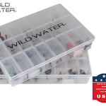 Wild Water has taken all the guesswork out of picking highly effective flies.  This assortment offers you 57 different patterns and sizes so you will be sure to find that perfect fly to land your trophy fish.! Patterns in this collection include dry flies, nymphs, caddis flies, wooly buggers, egg patterns, foam flies and so many types of flies on hook sizes 6-16.  This collection will also come with a card for each box showing the fly patterns in color, along with hook size information. You can watch your fishing pals' jaws drop when you open your boxes and reveal a full arsenal of flies that fish can't resist.