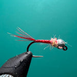 Red Rainbow Warrior variation tied on a Jig Hook with Tungsten Beads. Great addition to your Euro arsenal..