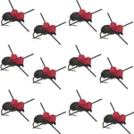 Red Top Black Foam Beetle Terrestrial Trout Dry Fly Fishing Flies - 1 Dozen Flies Size 14
