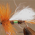 Royal Coachman Trude, a variation of the classic Royal Coachman fly pattern. The Trude has a down-wing tied with calf tail hair, which gives the fly a more buoyant profile and makes it easier to fish in choppy water.