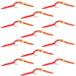 San Juan Worm Bead Head Power Worm Half and Half V-Rib - 1 Dozen Nymph Flies Hook Size 14