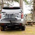 The Cook Station is the ultimate hitch mounted dual-purpose cargo and cooking solution. Built on the Ledge XL Cargo Platform, the Cook Station boasts a 38 x 24” storage and food prep surface and a slide-out sink basin and single burner stove. The Cook Station utilizes our exclusive swing arm for easy access to the back of the vehicle while the stout removable side rails and integrated mounting points allow you to store your cooler, jerry cans, firewood and more outside your vehicle. The sink basin can be used with gravity water system or can be paired with a Dometic Go rechargeable electric faucet.