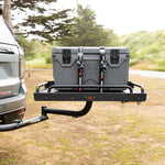 • CARGO CARRIER: With a 34.5 X 19” surface inside the perimeter rails, the steel carrier secures luggage, coolers, firewood and other large, bulky items. Maximize your cargo capacity while having easy access to the back of your vehicle with the 180° swing arm.