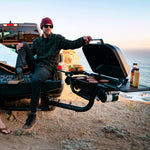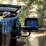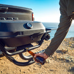 Attaching to any standard 2” hitch receiver the F-20 features a pivoting swing arm that allows you to rotate the grill up to 180° to access your bed and cargo. Staying put? Easily detach the grill from the swing arm and fire it up on a tabletop. Use the two-fold out prep tables and integrated bottle opener to get grilling for the whole crew.