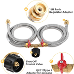 - ADAPTABILITY: Camping Propane Tank Adapter Hose for Grills, Stoves, Tailgating. It has two hoses with independent valves and attaches to the back of each regulator on the Forge 15. Grill longer and more economically using a standard propane tank!