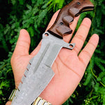 10-Inch Tracker Knife for Sale 10-Inch - Full Tang Damascus Steel Blade, Micarta G10 Handle, Horizontal Leather Sheath - KBS Knives Store
