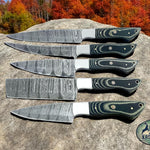 5 Pcs Custom Handmade Damascus Steel Knife Set with G10 Handles and Steel Bolsters