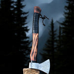 Introducing the Warrior's Edge Battle Axe, a premium blend of craftsmanship and practicality. This battle axe features a custom handmade forged 1095 steel blade, expertly engraved using the etching metal method for a distinctive and refined look. The ash wood handle, wrapped in black leather, provides both durability and a secure grip for optimal performance in various tasks. With a Rockwell Hardness of 55-60 HRC, this axe maintains a sharp edge that excels in both utility and combat scenarios. Each Warrior's Edge Battle Axe is accompanied by a high-quality leather sheath for easy storage and protection. Perfect for everyday use and demanding applications, this battle axe is designed for those who appreciate both form and function.