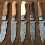 Handle Made Of Bone , Rose Wood , Olive Wood , Walnut Wood With Damascus Bolster